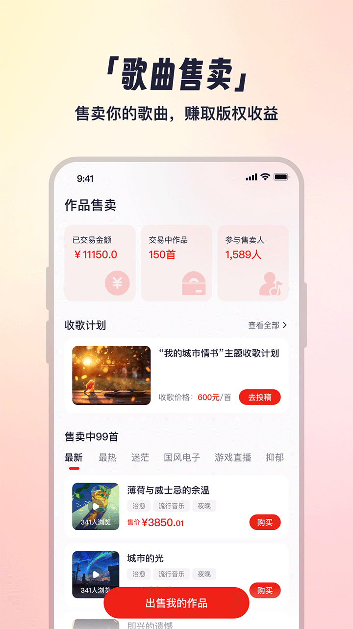 4、生成完成后,点击一键发布按钮,等待歌曲被全网推广并获取收益。