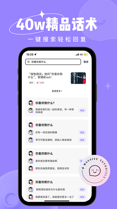 3、实用恋爱技巧,随时查阅,轻松应对各种聊天难题。