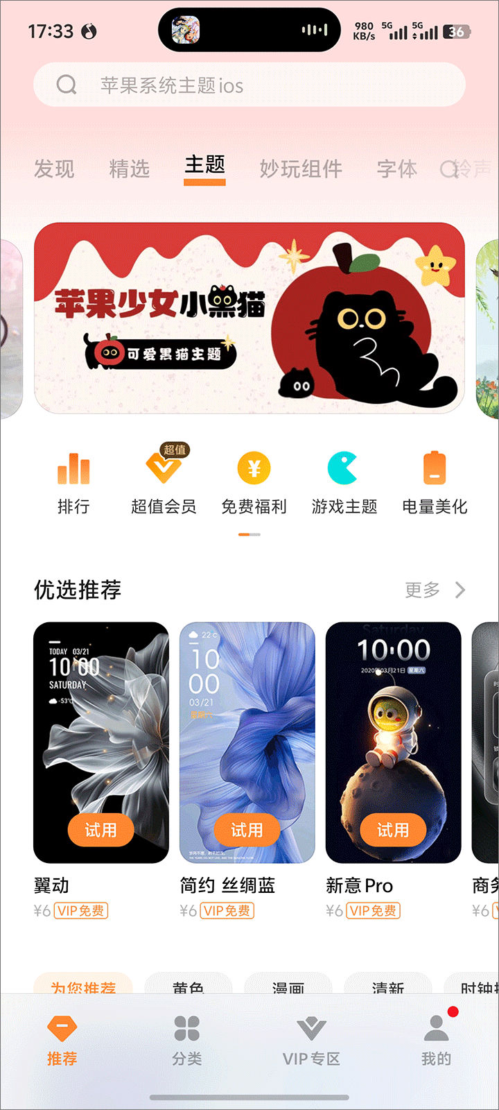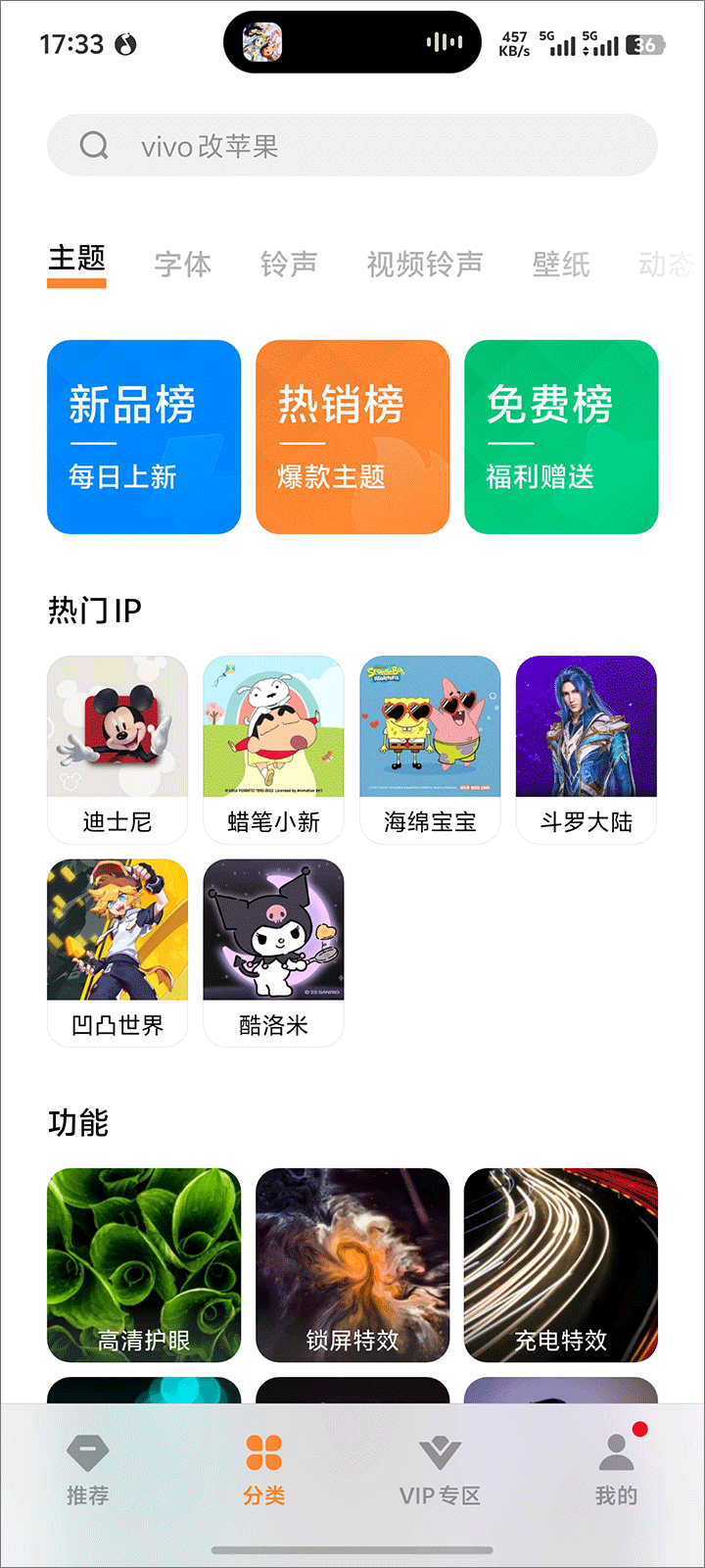 i主题海量定制主题随心换,贴合vivo手机系统特性,一键应用即刻焕新桌面视觉体验。精选高清壁纸与动态特效,搭配个性化字体风格,让屏幕呈现更具个性的质感细节。还支持来电铃声与来电秀自由设置,打造专属来电身份,提升日常使用趣味性与辨识度。