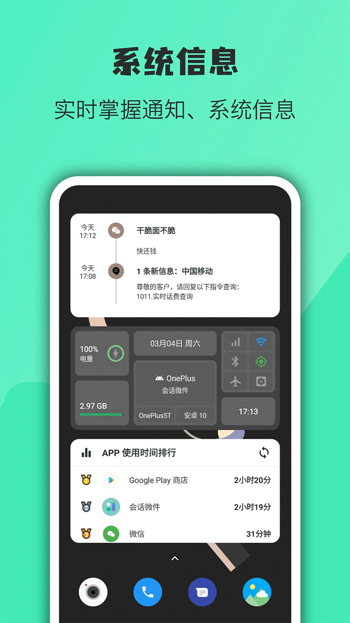 1、下载并完成App安装后,启动程序进入主页面,界面中展示着丰富多样的个性化小组件供选择;