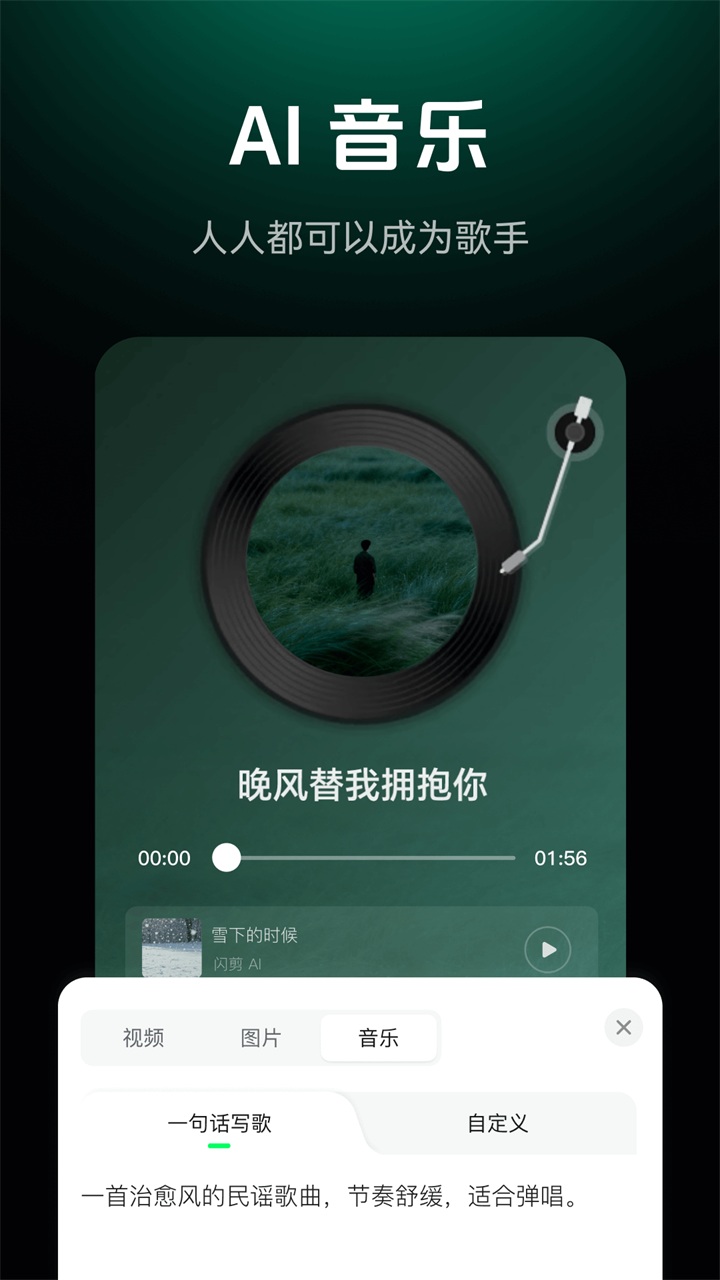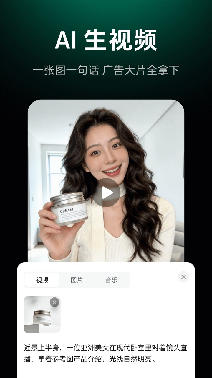 1、AI一键成片,输入文字即刻生成视频。